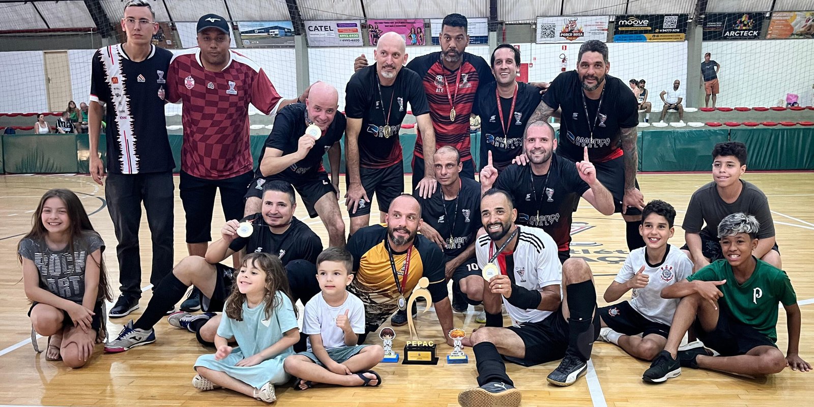 R: Quando entramos na competição no ano passado com as categorias menores, já foi histórico com o Sub-9 e o Sub-11. Nunca tínhamos participado do futsal, e fomos bem. Este ano, montamos novamente o Sub-10, que também esteve na briga pelo título na categoria iniciação, e o Sub-11 teve um bom desempenho no Metropolitano. O Sindi Clubes nos convidou para participar da categoria 39+. O Marcelinho enxergou nessa oportunidade uma forma de fomentar o nosso campeonato interno, que já é muito forte há anos. Alinhamos as regras para que os atletas precisassem estar jogando o interno, o que motiva os jogadores a participar, serem observados e convocados para representar o clube. Aceitei o desafio de voltar a comandar uma equipe de futsal em competições, algo que eu não fazia há anos, e não tenho palavras para descrever o feito histórico que foi sermos campeões de futsal pelo nosso clube. Entramos para a história ao lado do Juninho, que me auxiliou na competição, e dos jogadores, que deram tudo de si em cada jogo.